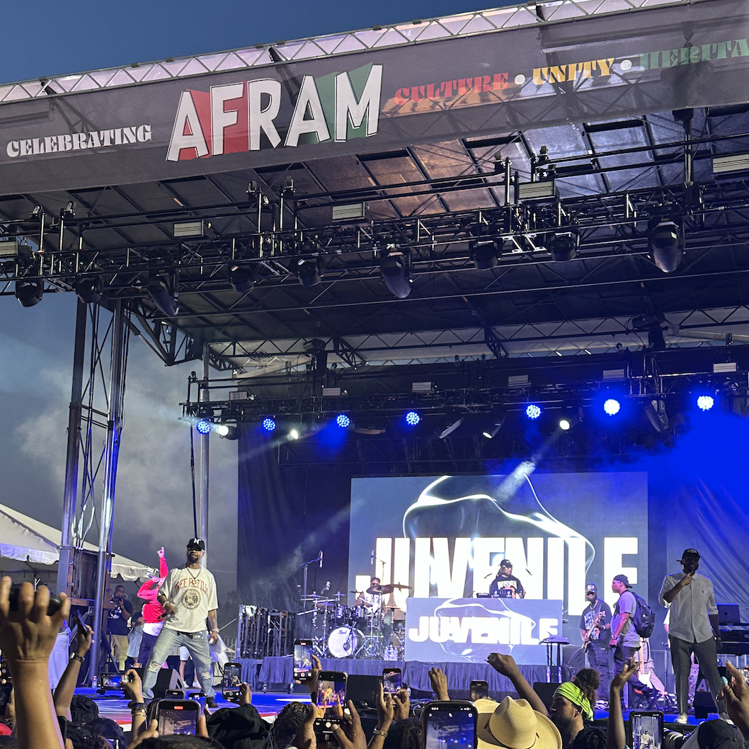The history of the AFRAM festival dates back to the 70’s. I learned of AFRAM from an ad on the radio this year! AFRAM celebrated 50 Years this past June and it was sight to see. Parking was insane. We walked until our legs turned to noodles to get into to the park. We started at the back the crowd when the sun was up, around 7PM then inched our way to the front to see the headliner “Juvenile” by 9 P.M. It was scorching hot and I left my fan home. Despite that huge mistake I had a blast with Prince Issa. I laughed so hard when he said he can’t believe he is getting to see classic hip-hop live and it sounds way better than it does on my 1900’s playlist.