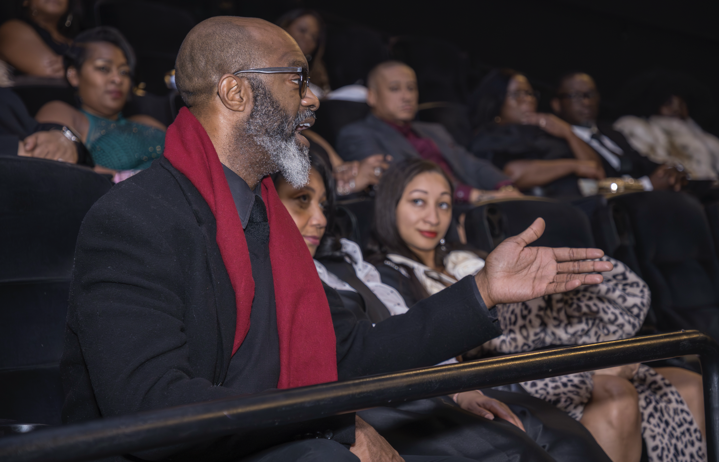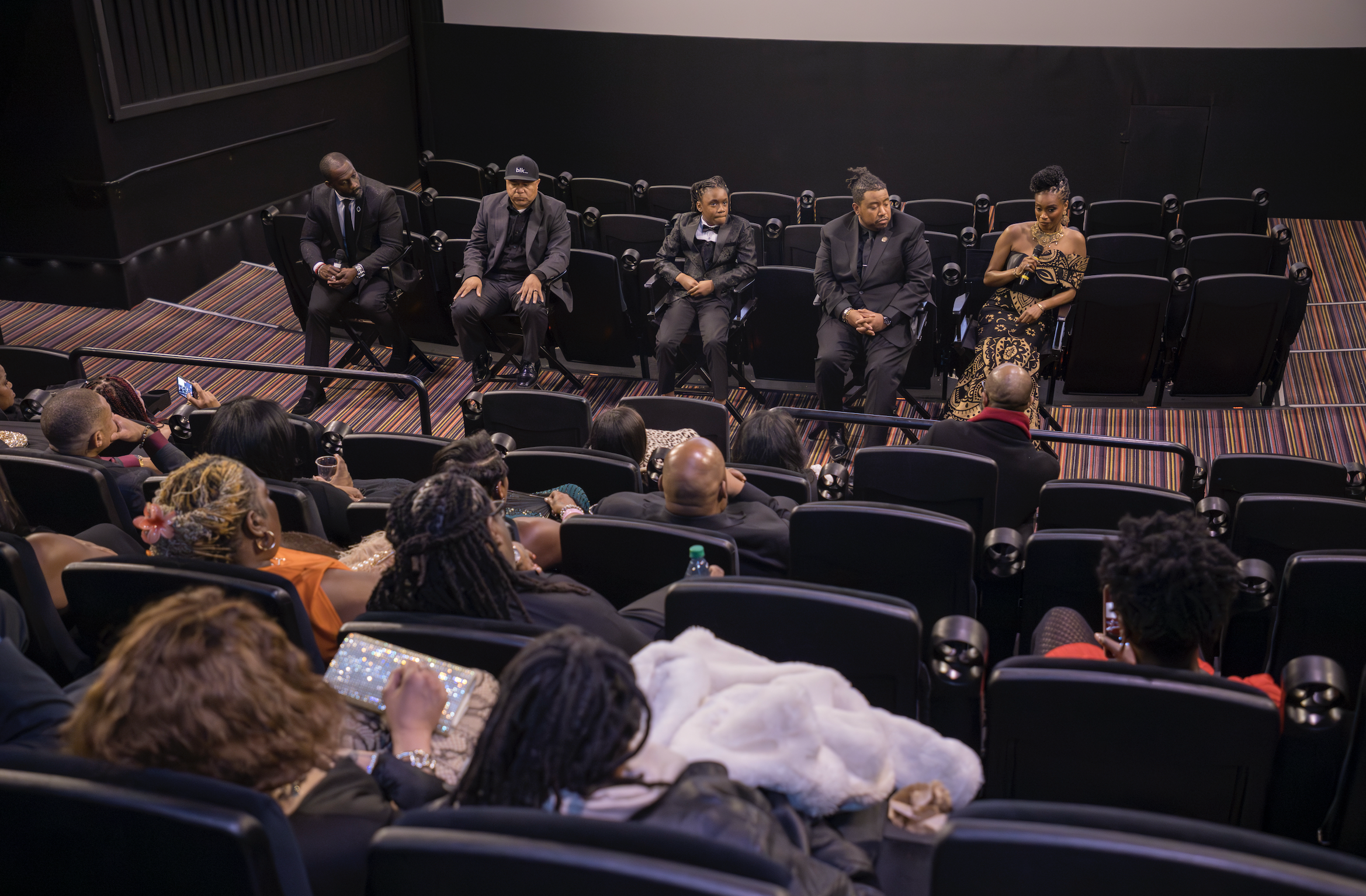 This event took place in a chic movie theater with reclining chairs, food and drinks made to order. The environment included jazz versions of west coast rap music, photography, socializing and a Q & A session.