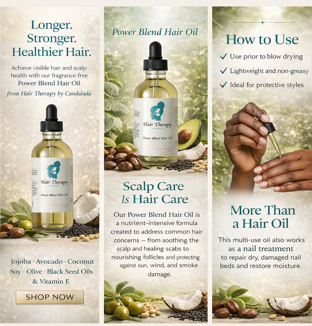 Hair Therapy by Candalada blends beauty and purpose with Power Blend Hair & Nail Oil and community events that support education and hair wellness.
